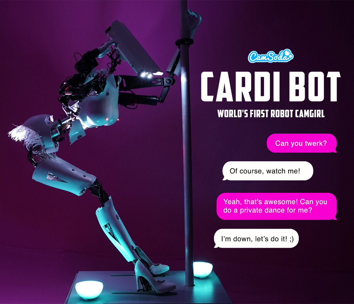 Aug 29, 2018 – CamSoda, a leading adult entertainment webcam platform, today unveiled “Cardi-Bot,” the world’s first sex robot people can interact with for free over the internet. Similar to a live camgirl, Cardi-Bot will perform various acts in real-time per user’s commands, including twerking, dancing, shimmying and shaking.