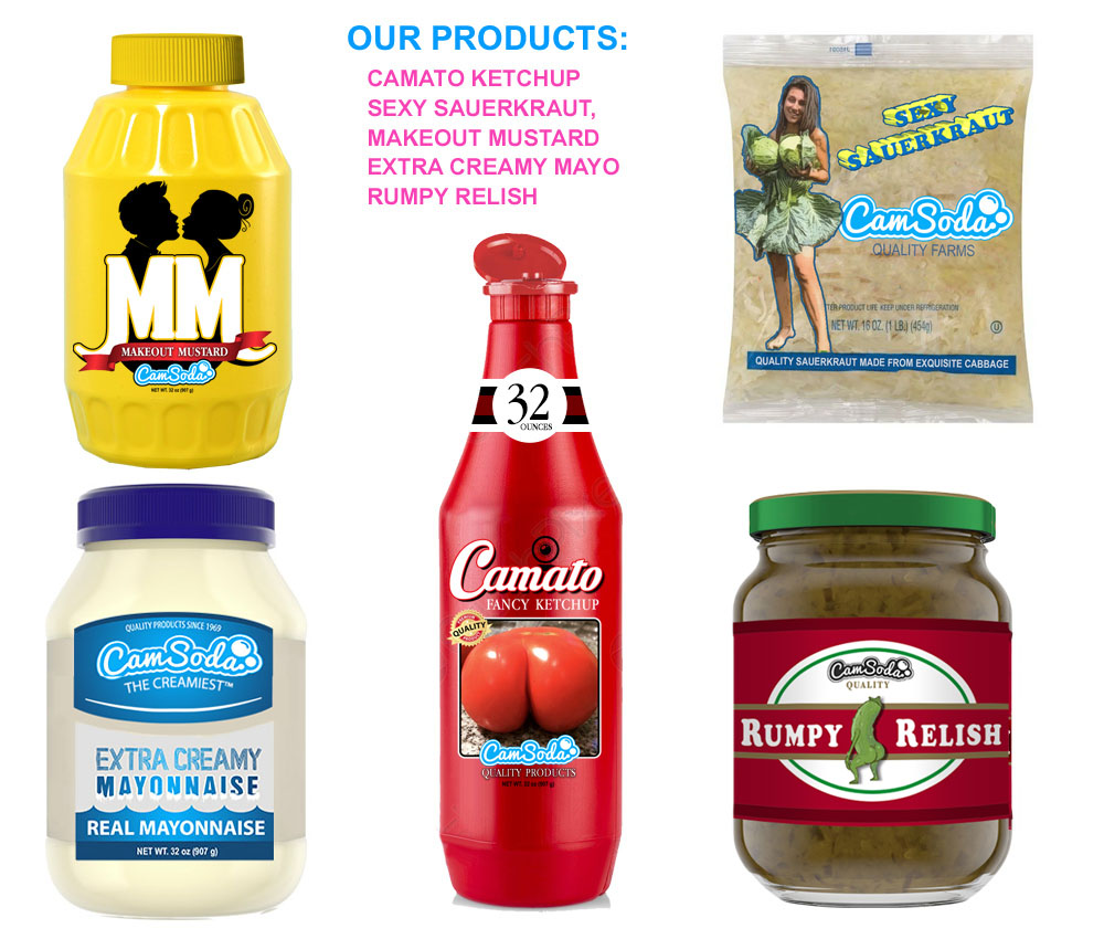 CamSoda is partnering with a premier condiment producer to provide a condiment line that comes in all shapes and sizes and, most importantly, packs a flavorful punch. Weiner crazed barbeque goers will be able to cascade their franks with Camato Ketchup, Sexy Sauerkraut, Makeout Mustard, Extra Creamy Mayonnaise, and Rumpy Relish for a taste that’ll surely take their weenies to another level.