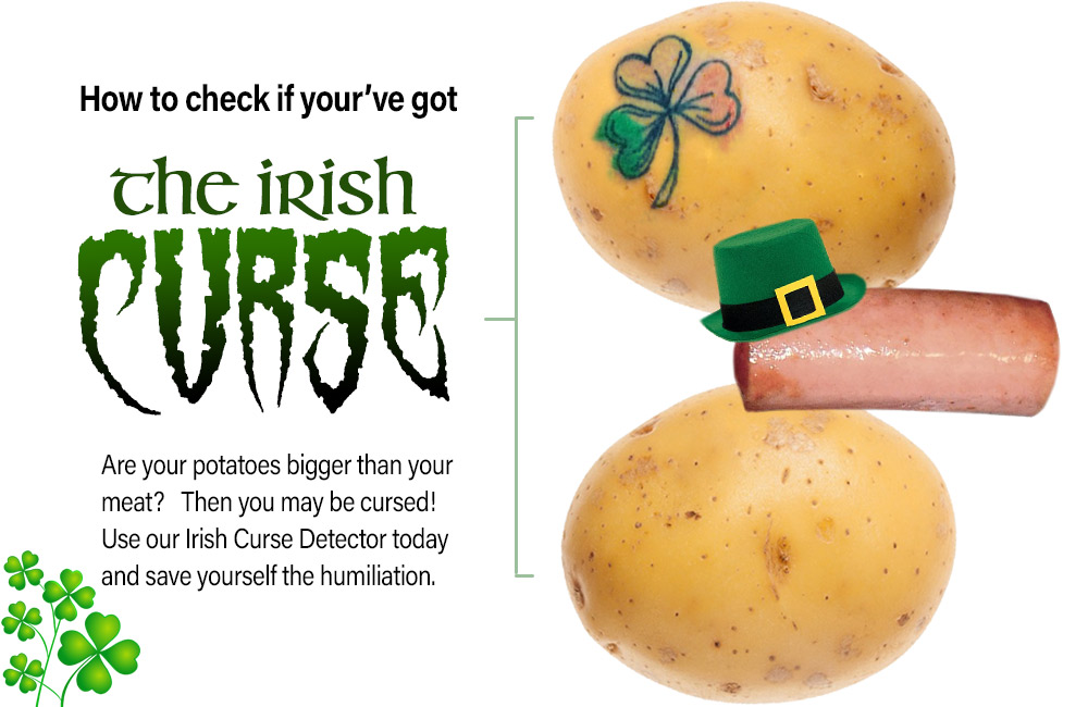 March 17, 2022 – St. Patrick’s Day is a chance for Irish people around the globe to be proud of their heritage and celebrate. The annual holiday is filled with drinking Guiness, dressing up as leprechauns and eating shepherd’s pie. But some guys at the pub this St. Patty’s day will come home after a few Jameson shots to a disappointing reality. They’ve been hit with the Irish curse. The cousin of “whiskey dick”, another cultural phenomenon that strikes year round, the Irish curse will plague a man with big balls and a tiny dick, making his lady friends gasp in both confusion and disappointment.