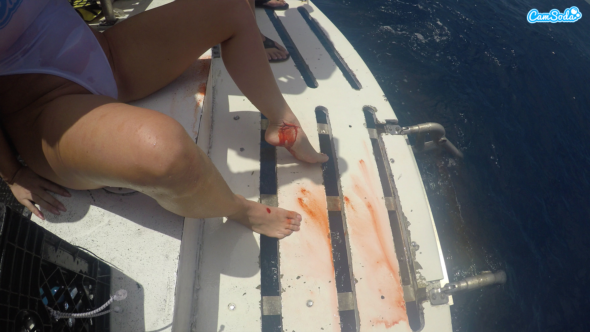 The underwater broadcast had to be cut short when Molly’s foot stuck out of the cage and was bitten by a lemon shark. Don’t worry though, Molly is doing just fine. She had to get 20 stitches but she is in good spirits and grateful for her quick recovery.
